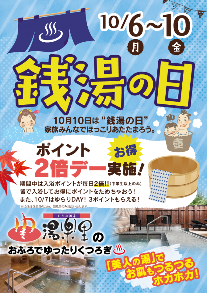 ・10/8(水)は休館日のため朝風呂のみ対応となります。