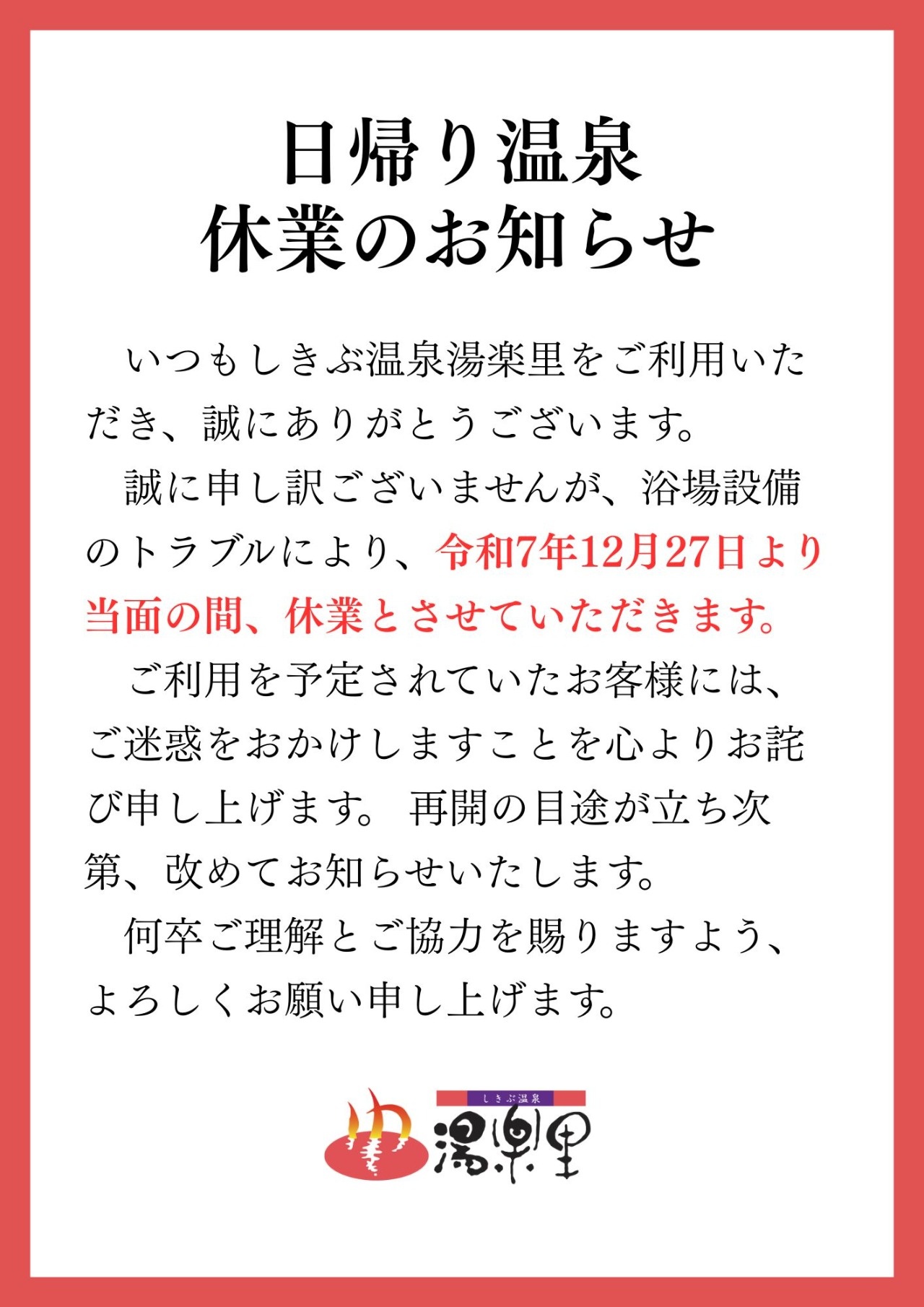 ≪ 令和7年12月27日より当面の間 休業 ≫